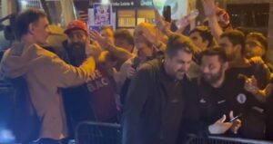 Ο Γιώργος Μπαρτζώκας γνώρισε την αποθέωση από τους φίλους του Ολυμπιακού έξω από το γήπεδο της Ρεάλ...