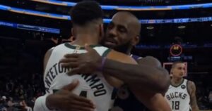 Ο Γιάννης Αντετοκούνμπο ζήτησε τη φανέλα του ΛεΜπρόν Τζέιμς μετά το τέλος του νικηφόρου αγώνα των Μπακς κατά των...