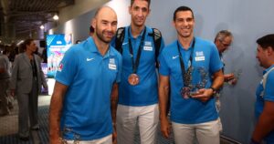 O Νίκος Ζήσης αποθεώθηκε από τους παίκτες της Εθνικής ομάδας στα αποδυτήρια της "Riga Arena" μετά την κατάκτηση του...