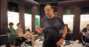Ο Εργκίν Αταμάν μίλησε στους παίκτες στα αποδυτήρια του ΟΑΚΑ, μετά τη σπουδαία πρόκριση του Παναθηναϊκού στο Final Four...