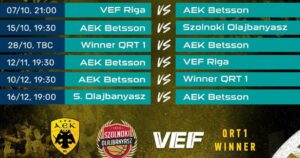Η ΑΕΚ υποδέχεται τη Σζόλνοκι και ο Προμηθέας παίζει στη Βαρσοβία με τη Λέγκια για τη 2η αγωνιστική του...