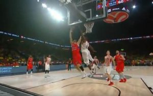 Olympiakos'un atletik pivotu Patric Young, dördüncü çeyreğin başında Milos Teodosic'e yaptığı harika blokla dur dedi!