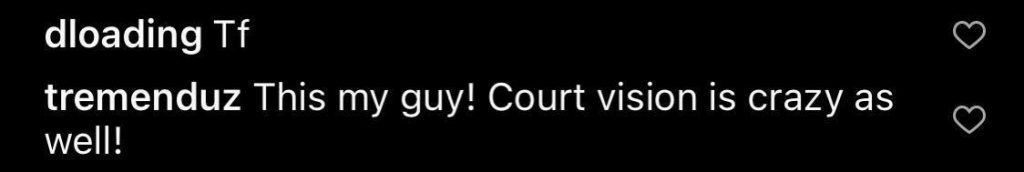 Και ο Τρεμέλ Ντάρντεν, όμως, άφησε το σχόλιό του, μιας και ήταν συμπαίκτης του Σέρβου από το 2018 μέχρι το 2020 στην γερμανική Μίτελντόϊτσερ: ”Η όρασή του στο παρκέ είναι τρελή”.