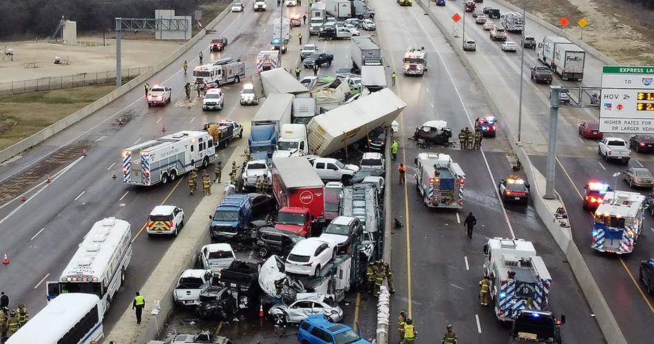Οι χαμηλές θερμοκρασίες σε συνδυασμό με το χιονόνερο το προηγούμενο βράδυ δημιούργησαν ένα ολισθηρό οδόστρωμα-παγίδα για τους οδηγούς και τα τροχαία που καταγράφτηκαν τις πρωινές ώρες στην περιοχή του Φορτ Ουόρθ ήταν πολλά, τίποτα, όμως, δε μπορεί να συγκριθεί με το σκηνικό τρόμου στον “Interstate 35W”.