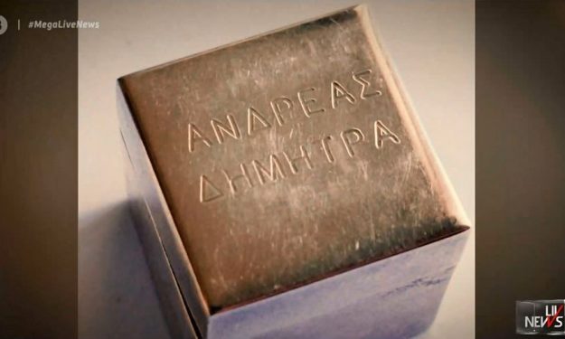 Ένα αντικείμενο, που ουσιαστικά πρόκειται για ένα γαμήλιο κουτί με τα ονόματα των τότε νιόπαντρων “ΑΝΔΡΕΑΣ-ΔΗΜΗΤΡΑ”, αρκετά πολυτελές και από πολύ γνωστό αθηναϊκό οίκο, με όλα τα συνοδευτικά εντός του.
