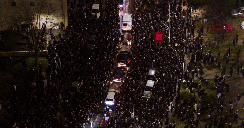 Η νύχτα έγινε ημέρα έξω από το γήπεδο του ΠΑΟΚ, από τα καπνογόνα που άναψαν οι φίλαθλοι της ομάδας, όταν η πομπή με τις σωρούς – από το αεροδρόμιο “Μακεδονία” έφτασε στο γήπεδο.