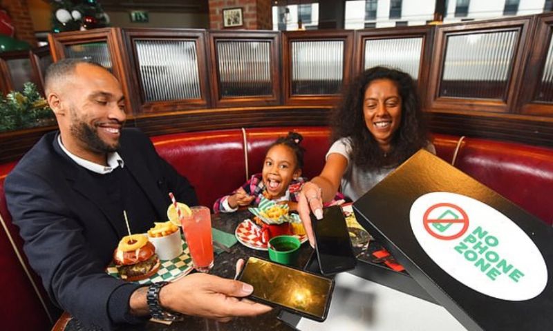 Για να διαφυλάξει την οικογενειακή θαλπωρή την ιερή ώρα του φαγητού, μία αλυσίδα εστιατορίων στη Βρετανία είχε την ιδέα να απαγορεύσει τα κινητά τηλέφωνα από το τραπέζι.