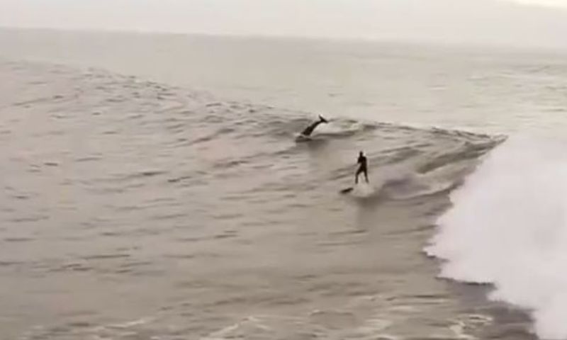 Ο σέρφερ – που ανήρτησε το βίντεο από την Τοσκάνη- απολαμβάνει το χόμπι του, παρέα με μία ομάδα δελφινιών. Καθώς εκείνος διασχίζει τα κύματα με τη σανίδα του σε παραλία της Καλιφόρνια, τα δελφίνια παρουσιάζουν το δικό τους ιδιαίτερο σόου.