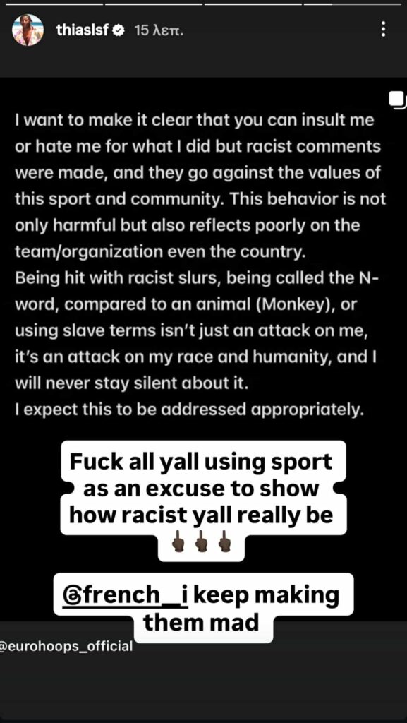 “Άντε γαμ@@είτε που χρησιμοποιείτε σαν δικαιολογία ένα άθλημα για να δείξετε πόσο ρατσιστές είστε. Γαλλία, συνέχισε να τους νευριάζεις”, έγραψε χαρακτηριστικά.