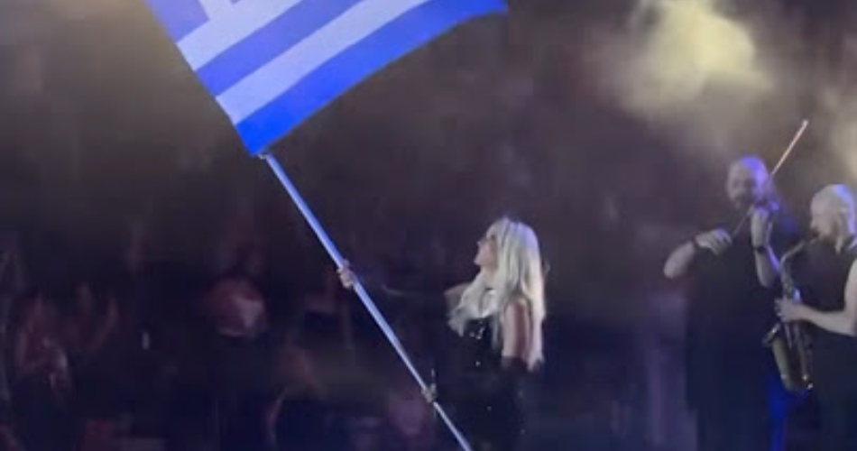 Μάλιστα, κατά τη διάρκεια της συναυλίας, πήρε την ελληνική σημαία και άρχισε να την κυματίζει, συνεχίζοντας το μαγευτικό πρόγραμμά της.