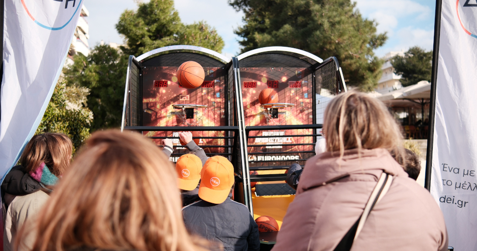 Το ΔΕΗ 3×3 POWER TO THE HOOD by Eurohoops στη Νέα Σμύρνη ήταν μια πραγματική γιορτή του 3×3 για μικρούς και μεγάλους. Ο freestyler DudeK ξεσήκωσε συμμετέχοντες και επισκέπτες με ένα εντυπωσιακό Street Basketball Show, εκτελώντας απίθανα κόλπα, ενώ δεν δίστασε να βάλει και τα παιδιά στο… παιχνίδι. Οι λιλιπούτειοι φίλοι του μπάσκετ διασκέδασαν στο φουσκωτό γήπεδο, δοκίμασαν το πρωτότυπο παιχνίδι «μουσικές μπάλες» και κέρδισαν αναμνηστικά δώρα. Οι μπασκέτες για ελεύθερο παιχνίδι γέμισαν από μικρούς και μεγάλους, ενώ τα Basketball Arcade Games δοκίμασαν την ταχύτητα και την ικανότητα όλων στο σουτ. Το 360° Photo Booth απαθανάτισε τις πιο δυνατές στιγμές και το Face Painting corner έβαλε χρώμα στη γιορτή, με τα παιδικά πρόσωπα να “μεταμορφώνονται” σε λαμπερές μπάλες μπάσκετ. Την απόλυτη μπασκετική ατμόσφαιρα συμπλήρωσε ο Kiss FM, με τους ραδιοφωνικούς παραγωγούς Ελένη Νικολάου και Γιώργο Λάζαρο να ανεβάζουν το κέφι, αλληλεπιδρώντας με το κοινό.