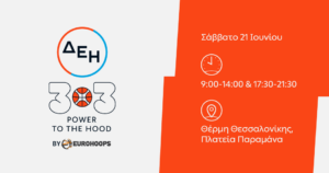 Συνεχίζονται οι εγγραφές για το τουρνουά 3×3 του ΔΕΗ 3×3 POWER TO THE HOOD by Eurohoops στη Θέρμη.