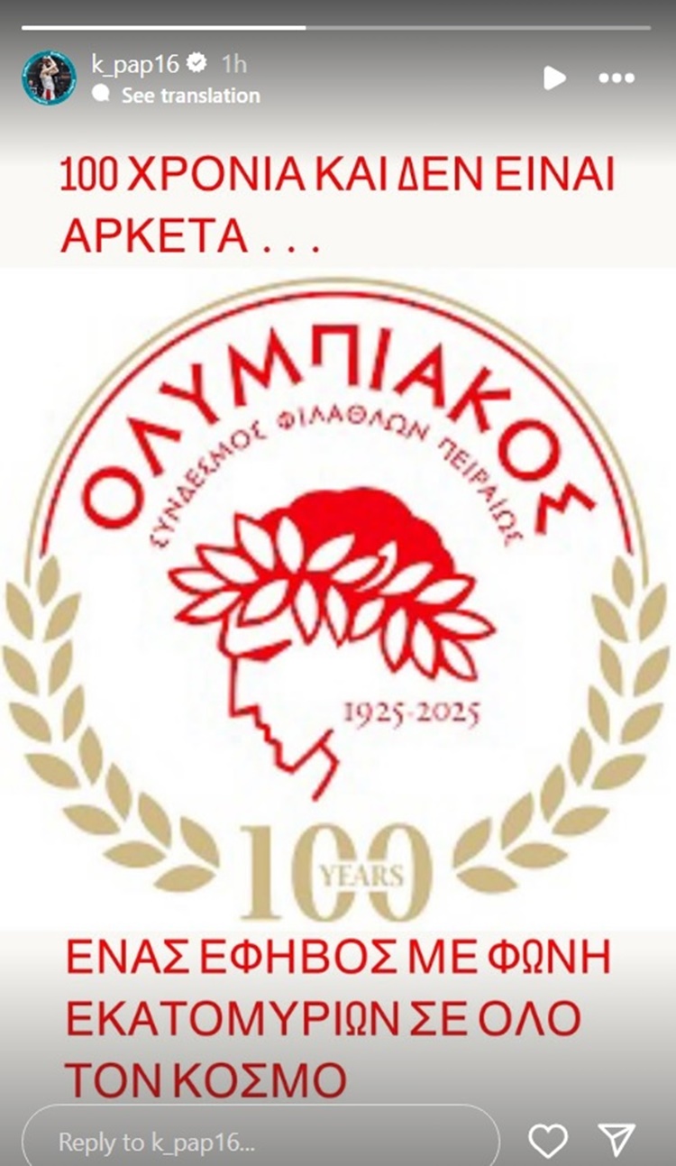 Ο “Παπ” δημιούργησε ένα story στον προσωπικό του λογαριασμό στο Instagram, συμμετέχοντας κι αυτός στον εορτασμό για τον ένα αιώνα ζωής του Ολυμπιακού.