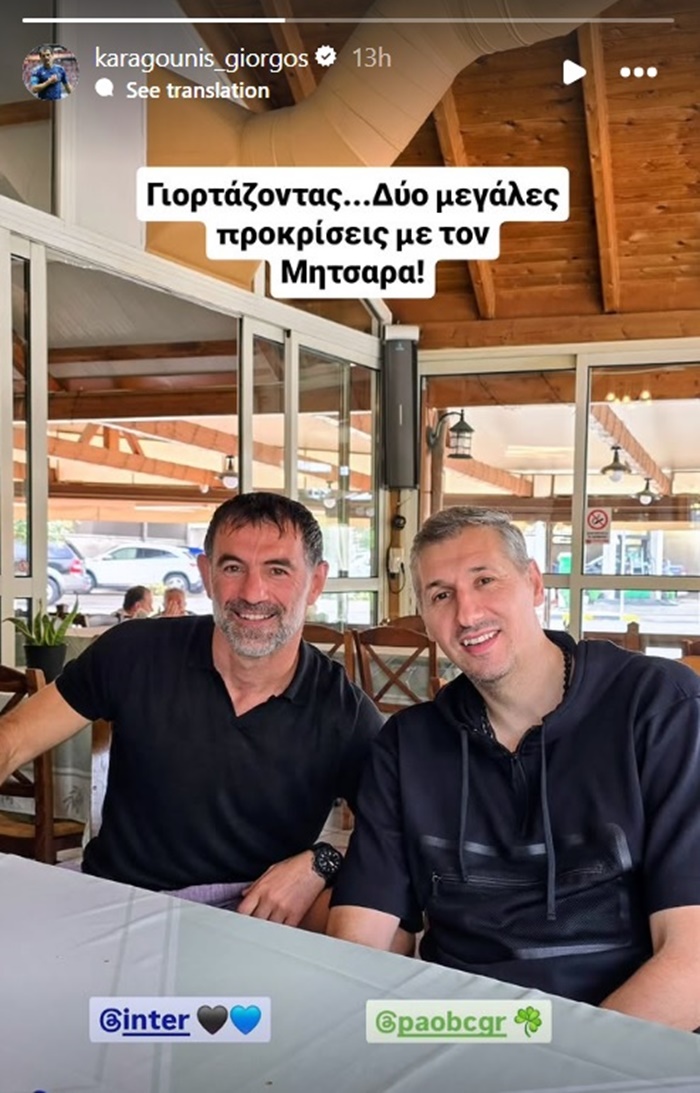 Ο Δημήτρης Διαμαντίδης και ο Γιώργος Καραγκούνης συναντήθηκαν και γιόρτασαν μαζί – όπως χαρακτηριστικά έγραψε στο Instagram ο πρώην διεθνής ποδοσφαιριστής – τις προκρίσεις του Παναθηναϊκού στο Final Four της Ευρωλίγκας και της Ίντερ στον τελικό του Τσάμπιονς Λιγκ.