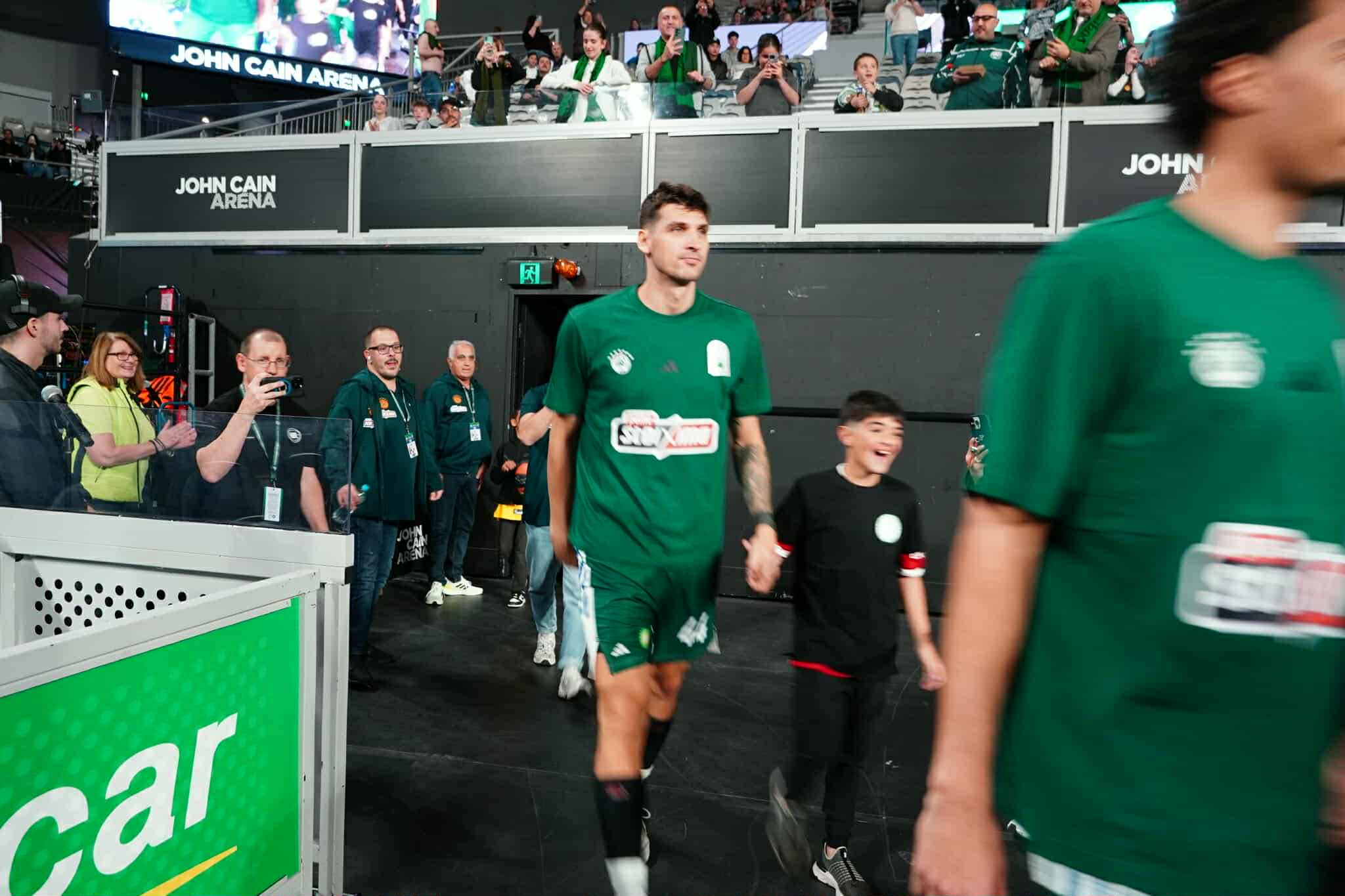 H είσοδος του Παναθηναϊκού στον αγωνιστικό χώρο έγινε συνοδεία 12 ελληνόπουλων, κατοίκων της ελληνικής μεγάλης ελληνικής παροικίας της Μελβούρνης.