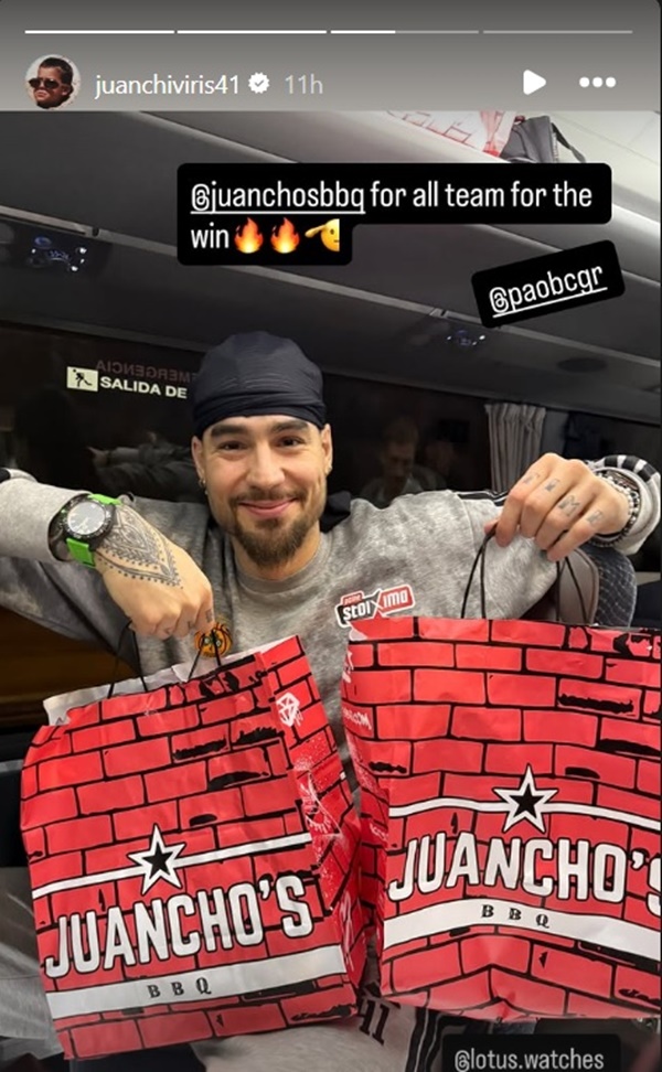 Έτσι δεν έχασε την ευκαιρία να γεμίσει δύο μεγάλες σακούλες με μπέργκερ και να κεράσει όλη την ομάδα μετά τη μεγάλη νίκη του Παναθηναϊκού στη Μαδρίτη, γεμίζοντας το… στομάχι των συμπαικτών και των υπόλοιπων μελών πριν από την πτήση της επιστροφής για την Αθήνα.