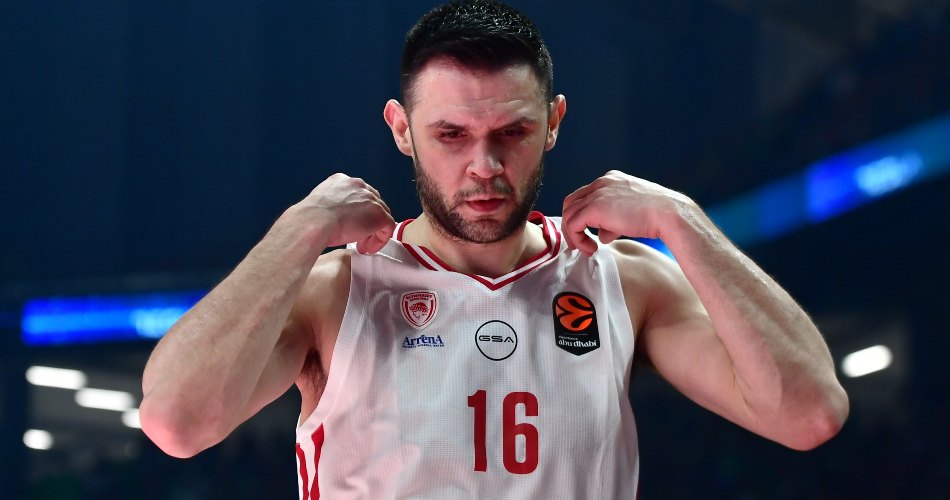Ο αρχηγός των “ερυθρόλευκων”, ολοκλήρωσε το παιχνίδι με 8 πόντους (1/2 διπ, 2/7 τριπ.), 2 ριμπάουντ, 2 ασίστ και 1 κόψιμο, σε 18:04.