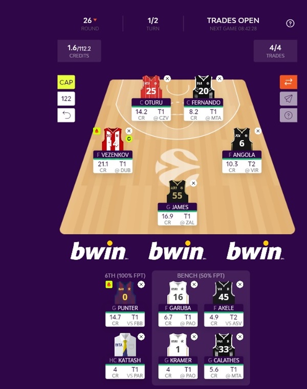 Θα προτείνουμε, τέλος, τον Οντέτ Κάτας με μόλις 4 credits στο Euroleague Fantasy.