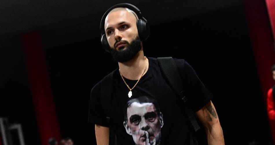 Ο Γάλλος γκαρντ έφτασε στο ΣΕΦ φορώντας μία μπλούζα που δείχνει το πρόσωπο του Γιώργου Μπαρτζώκα με τη χαρακτηριστική κίνηση που ζητάει… σιωπή!