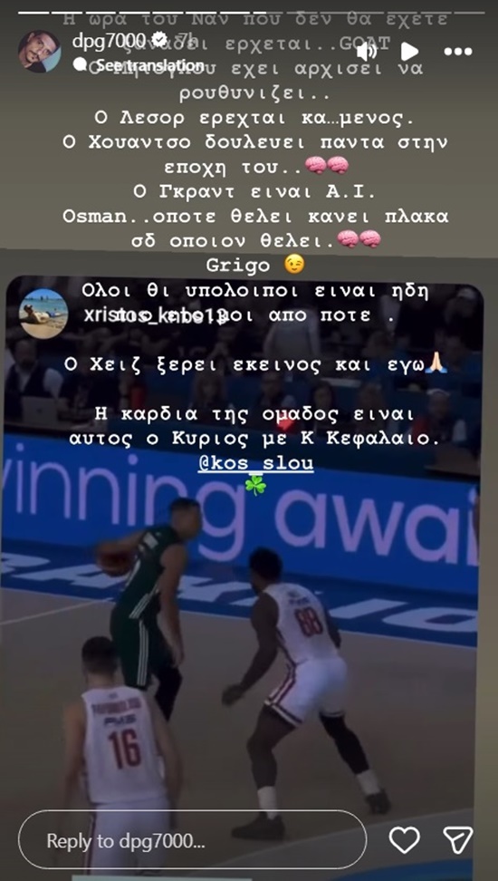 Ξεχωρίζει η ατάκα του για τον … GOAT, Κέντρικ Ναν, αλλά και τον αρχηγό του Παναθηναϊκού, Κώστα Σλούκα.