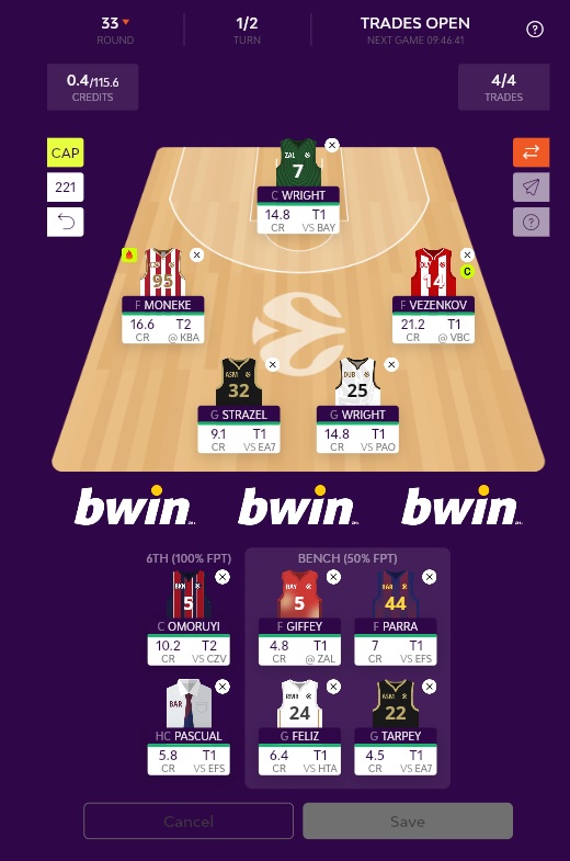 Θα τον επιλέξουμε αυτήν την αγωνιστική, αφού πιστεύουμε ότι θα συνεχίσει το καλό σερί του, ενώ παράλληλα μπορούμε να κρατήσουμε τον πανάκριβο – αλλά άριστο στο Euroleague Fantasy – Σάσα Βεζένκοφ.