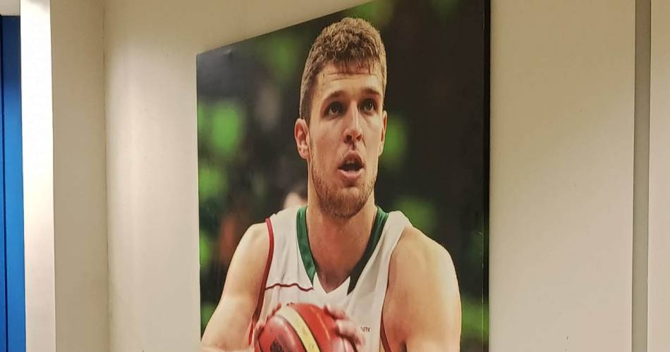 Ωστόσο, σε ένα σημείο του γηπέδου δεσπόζει και η μορφή του φόργουορντ του Ολυμπιακού, Σάσα Βεζένκοφ, με τη φανέλα της Εθνικής Βουλγαρίας.