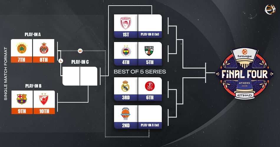 Ο Ολυμπιακός (1st seed) του Γιώργου Μπαρτζώκα θα χρειαστεί να περιμένει για να μάθει ποια ομάδα θα λάβει το 8th seed μέσω Play-In Showdown, στο οποίο ο Παναθηναϊκός έχει διπλή ευκαιρία για να προκριθεί στα playoffs.