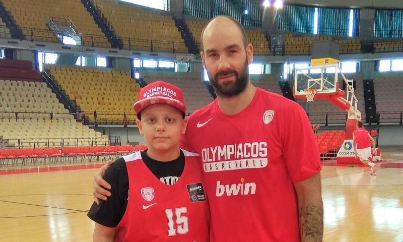 Ο μικρός φίλος της ομάδας φώτισε το φαληρικό στάδιο με το χαμόγελό του, το οποίο ήταν σταθερά πλατύ δίπλα σε παίκτες όπως ο Βασίλης Σπανούλης κι ο Γιώργος Πρίντεζης. Μάλιστα, αυτό έγινε ακόμη μεγαλύτερο μόλις παρέλαβε και τα δώρα του, μία μπάλα και μία φανέλα με τις υπογραφές των παικτών και των προπονητών, αλλά κι ένα καπελάκι στα χρώματα του Ολυμπιακού.