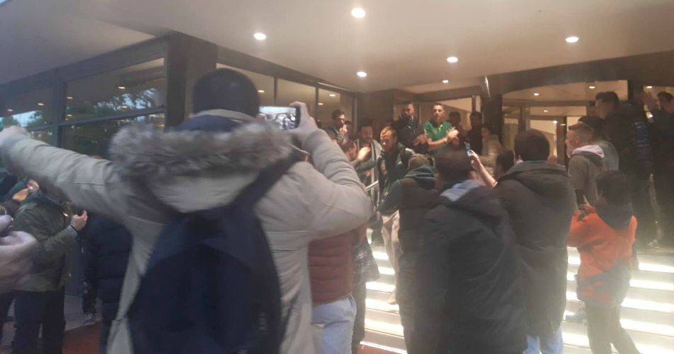 Οι πρωταθλητές Ελλάδας κυνηγούν το “break” για να πάρουν το πάνω χέρι στη σειρά των playoffs και πάνω από 100 φίλοι της ομάδας… ξεπροβόδισαν την αποστολή μέσα σε αποθέωση, κατά την αναχώρηση από το ξενοδοχείο για το WiZink Center.
