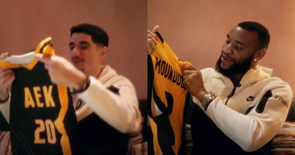 Οι αρχηγοί Πέτρος Μάνταλος & Αρόλντ “ΛεΜπρον Τζέιμς” Μουκουντί παρέλαβαν τις φανέλες του κι ευχήθηκαν τα καλύτερα στον Ντράγκαν Σάκοτα και στους παίκτες του.