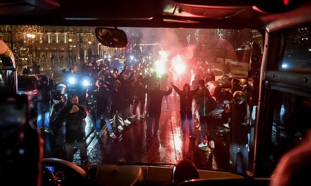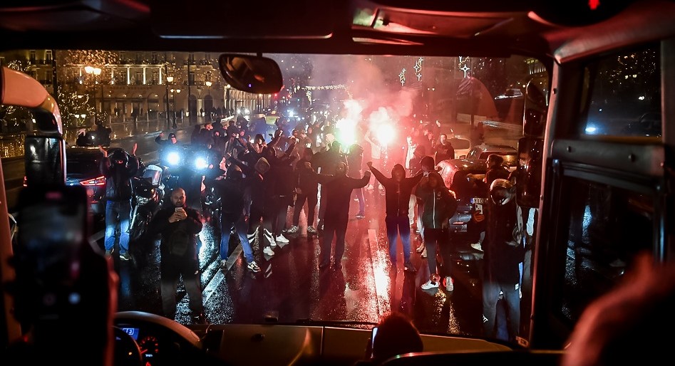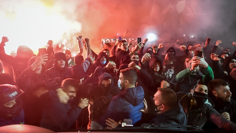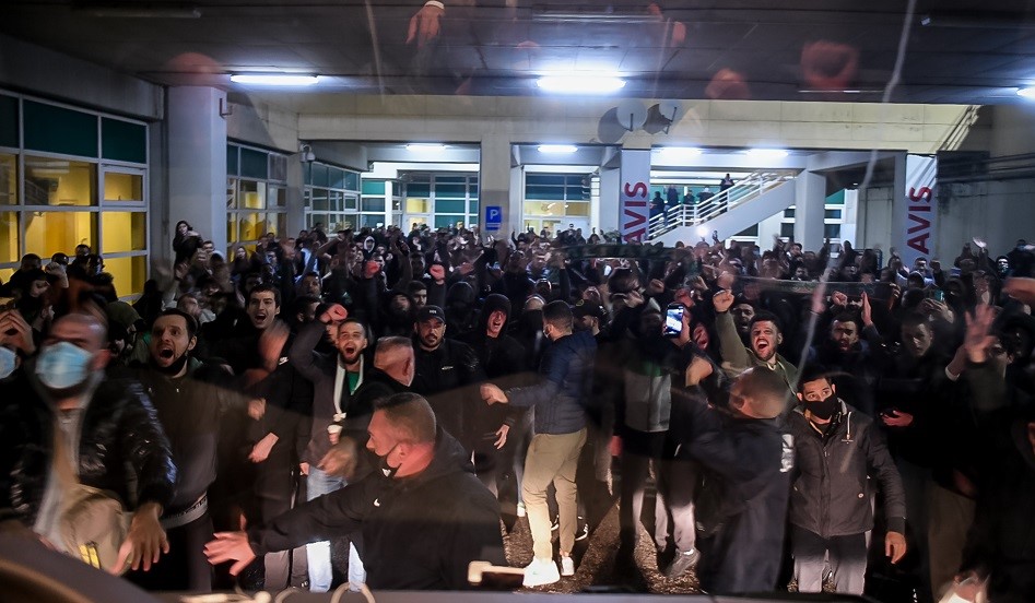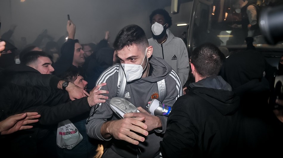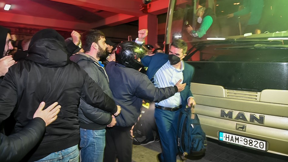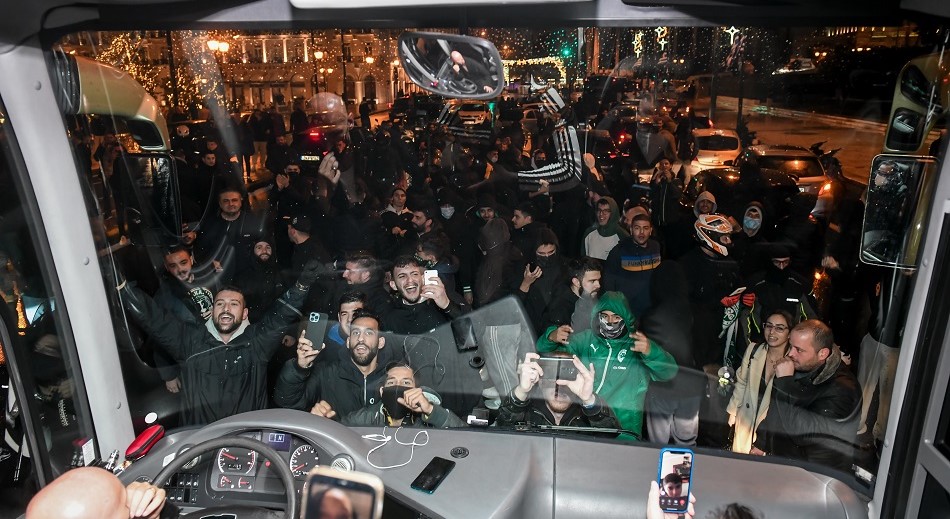 Αυτό είχε ως αποτέλεσμα το πούλμαν του Παναθηναϊκού να σταματήσει προσωρινά και ο κόσμος αποθέωσε την ομάδα με συνθήματα και φωτοβολίδες!