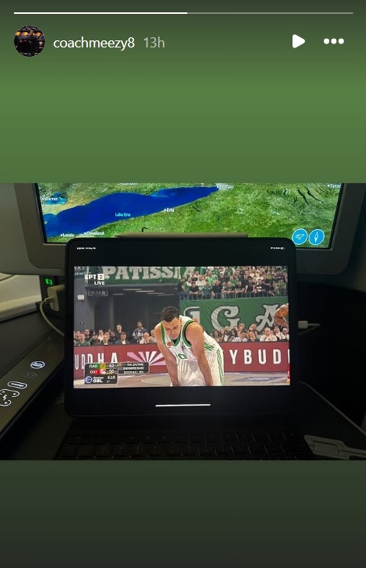 Ο τρις πρωταθλητής Ευρώπης με τον Παναθηναϊκό άνοιξε το προσωπικό του τάμπλετ και είδε το παιχνίδι του ΟΑΚΑ μέσα στο αεροπλάνο, κάνοντας μάλιστα και ένα story στο Instagram, με την εικόνα παγωμένη και τον Κώστα Σλούκα στο πλάνο.