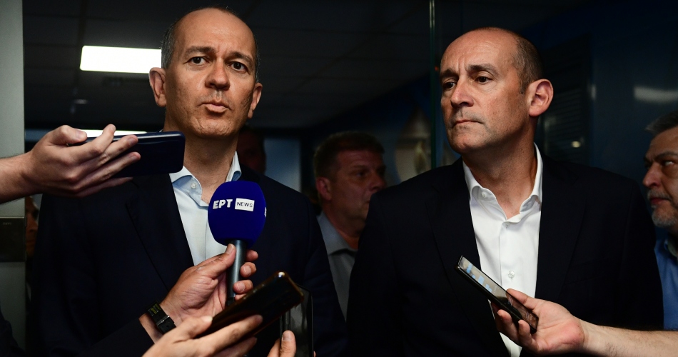 Μετά τον Δημήτρη Γιαννακόπουλου που έκανε το ραντεβού λίγο μετά τις 16:00, σειρά πήραν οι Πρόεδροι του Ολυμπιακού, οι οποίοι μίλησαν μετά τη συνάντηση κι αναφέρθηκαν στο κλίμα της συνάντησης αλλά και στην επανεκκίνηση των Τελικών της Stoiximan GBL.