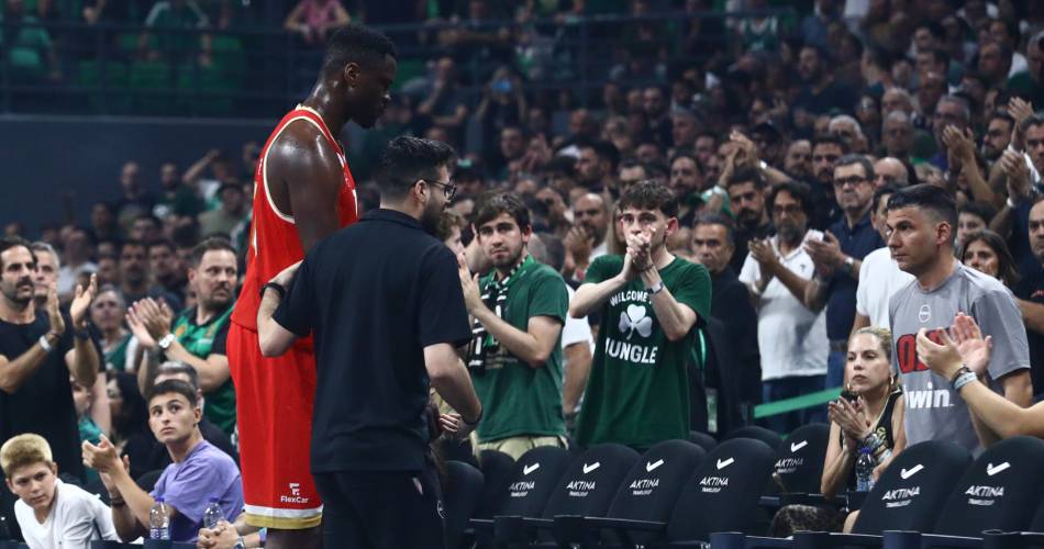 Ο διεθνής Γάλλος σέντερ σωριάστηκε στο glass floor και ήταν εμφανές από τις εκφράσεις και τις κινήσεις του ότι πονούσε, ενώ κάποιοι παίκτες του Ολυμπιακού κρατούσαν το κεφάλι τους από αγωνία.