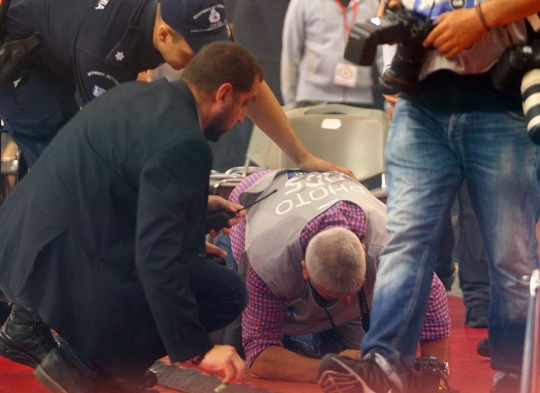 Με δηλώσεις του ο γνωστός φωτογράφος αποκάλυψε πως ένας “φουσκωτός” άντρας τον έσπρωξε με αποτέλεσμα να πέσει κάτω και να χτυπήσει στο γόνατο και τον ώμο. Παράλληλα τονίζει πως διατηρεί άριστες σχέσεις με τους παίκτες και την “ερυθρόλευκη” ΚΑΕ χωρίς να έχει προκαλέσει ποτέ.