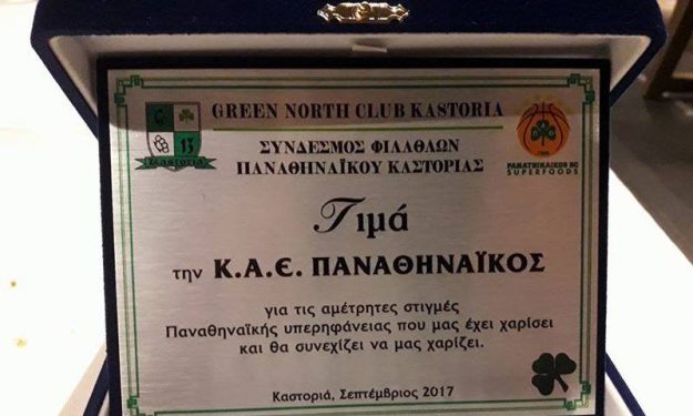 Με την επιστροφή στο ξενοδοχείο Limneon τους “πράσινους” περίμενε μια ευχάριστη έκπληξη καθώς περισσότεροι από 70 οπαδοί της ομάδας από την Καστοριά και τις γύρω περιοχές ήταν εκεί και τους αποθέωσαν. Ακολούθως, ο Σύνδεσμος Φίλων Παναθηναϊκού Καστοριάς απένειμε τιμητική πλακέτα στην ΚΑΕ, την οποία παρέλαβαν οι Πασκουάλ και Μάνος Παπαδόπουλος. Από την πλευρά τους οι άνθρωποι του “τριφυλλιού” τους δώρισαν μια μπλούζα με τις υπογραφές όλων των παικτών.