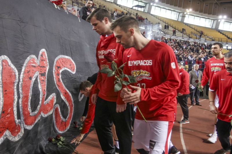 Οι παίκτες του Γιάννη Σφαιρόπουλου άφησαν τα λουλούδια, μπροστά από την θύρα 7 του ΣΕΦ λίγο πριν ξεκινήσει το ματς με την ομάδα του Γιάννη Καστρίτη, ενώ μετά από λίγο το ίδιο έπραξαν και οι παίκτες των φιλοξενούμενων οι οποίοι χειροκροτήθηκαν από όλο το γήπεδο, για την κίνηση τους.