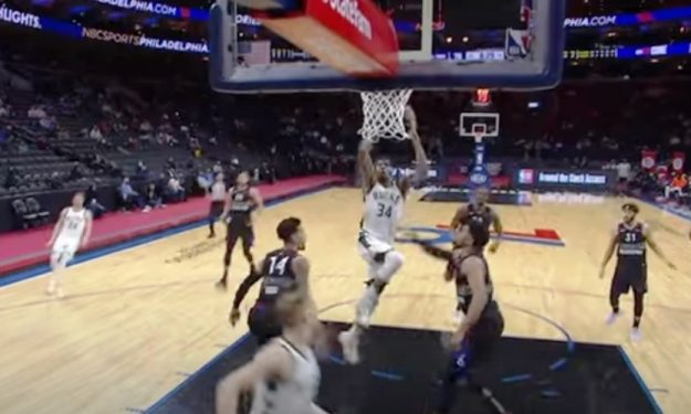 Δεν αποτέλεσε εξαίρεση η τελευταία νύχτα. Ο Γιάννης παρέλαβε μία εξαιρετική πίσω από την πλάτη πάσα από τον Ντόντε ΝτιΒιντσέντζο και κάρφωσε με εντυπωσιακό τρόπο στο καλάθι των Σίξερς, οδηγώντας την αντεπίθεση των Μπακς που κατέληξε σε μεγάλη νίκη.