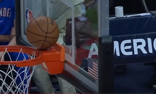 Σε μία προσπάθεια του Μέλβιν Φρέιζερ των φιλοξενούμενων για λέι απ μπροστά στον Ρούντι Γκομπέρ, η μπάλα βρήκε το ταμπλό, μετά τη στεφάνη και γύρισε στη βάση αυτής όπου κι… έμεινε!