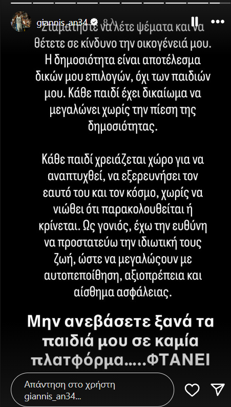 Ο Γιάννης Αντετοκούνμπο τοποθετήθηκε για τα δημοσιεύματα περί μόνιμης εγκατάστασης της συζύγου και των παιδιών του στην Αθήνα.