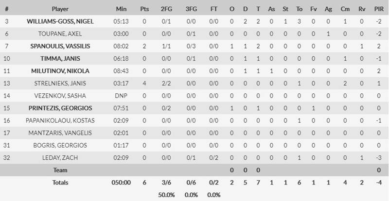 Οι ”ερυθρόλευκοι” ήταν αγνώριστοι και με μόλις 3/6 δίποντα, 0/6 τρίποντα, 0/2 βολές και 6 λάθη, είδαν για δεύτερη φορά στην ιστορία τους στην Ευρωλίγκα να έχουν μόλις 6 πόντους σε 10′!