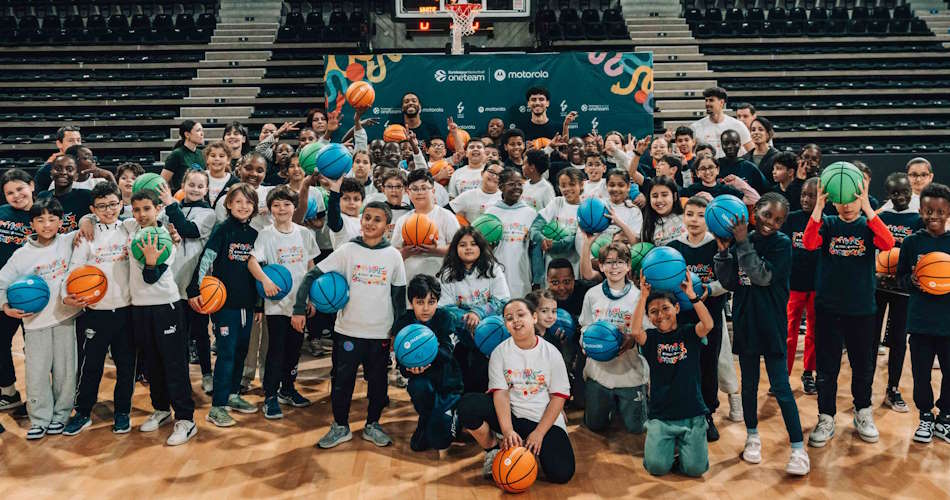 Later on, the day concluded with a basketball donation and on-court exercises, where ASVEL One Team Ambassadors Shaquille Harrison and Adam Atamna joined U18 players and representatives from Euroleague Basketball and Motorola, giving the kids the chance to keep playing beyond the event while sharing a special moment together.