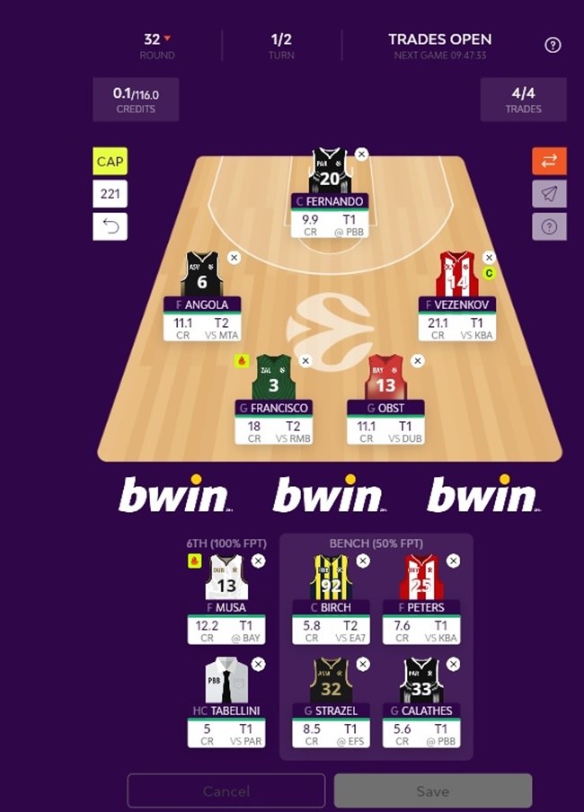 The answer, therefore, is a resounding yes. Vezenkov is currently the most expensive player in the game, which is logical given that he leads the league with a 23.6 average PIR. We are reinstating him, assigning him the captaincy, and balancing the budget by pairing him with more affordable options such as Bruno Fernando, Andreas Obst, Braian Angola, or Mamadi Diakite.