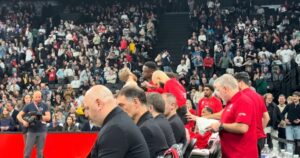 Η παρακάμερα του Ολυμπιακού μεταφέρει ήχο κι εικόνα από τον αγωνιστικό χώρο της LDLC Arena της Βιλερμπάν.