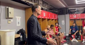 Ο Γιώργος Μπαρτζώκας μίλησε στους παίκτες του στα αποδυτήρια, μετά τη νίκη του Ολυμπιακού κατά του Παναθηναϊκού για την...