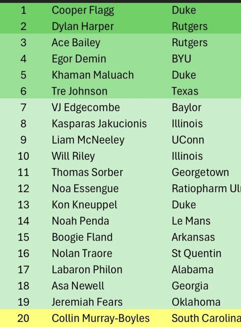 «Долго раздумывал, но вот мой первый официальный мок-драфта на начало сезона. Безумно сложный рейтинг для создания, с кучей талантливых новичков, которые, вполне возможно, выставят свои кандидатуры на драфт после сильного начала сезона», – отмечается в аккаунте nbadraftpoint.
