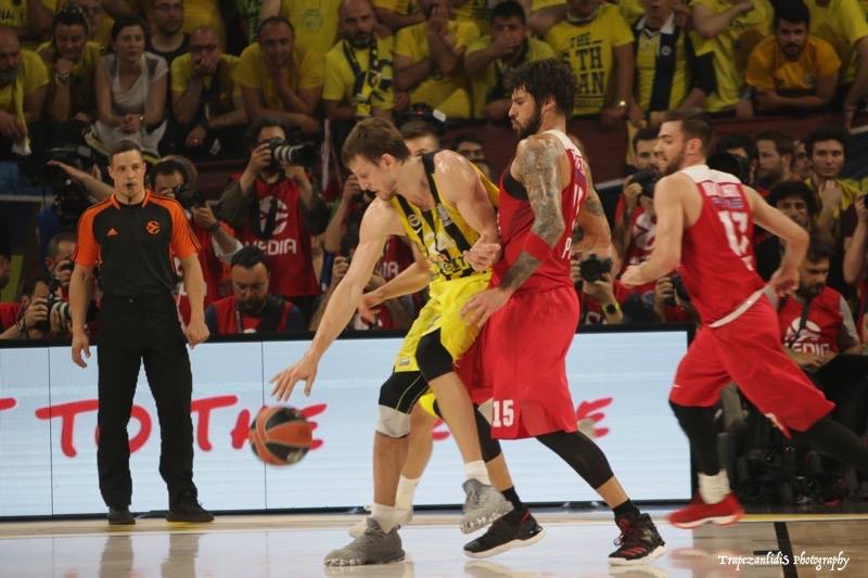 Turkish Airlines EuroLeague finalinin ilk yarısı müthiş bir mücadeleye sahne oldu. Maça muhteşem bir smaçla başlayan Jan Vesely, hücumdaki çıkışını savunmada da devam ettirdi. Olympiakos hücumunda Fenerbahçe çemberini savunan Vesely, rakibine harika bir blok yaptı.