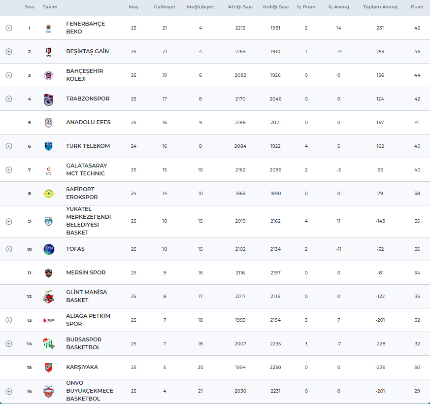 Türkiye Sigorta Basketbol Süper Ligi’nde 25. hafta geride kaldı.