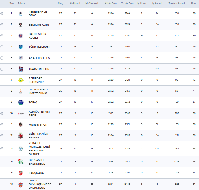 Türkiye Sigorta Basketbol Süper Ligi’nde 27. hafta geride kaldı.