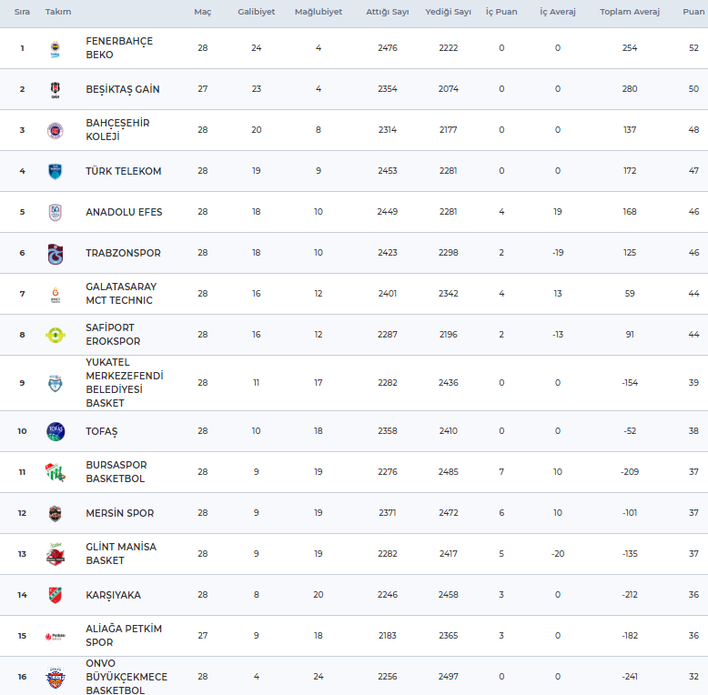 Fenerbahçe Beko maç fazlasıyla liderliğini sürdürürken düşme potasında da ortalık kızışmış durumda.